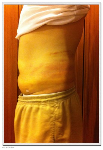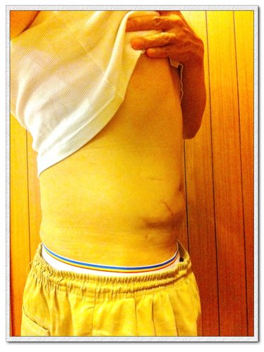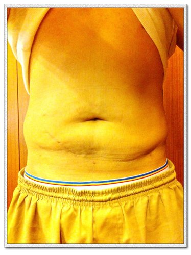 小腹部位沒有變小,詢問過護士說是正常現象,因為術後會水腫'瘀青(心裡忐忑,等著瞧吧)
