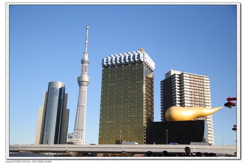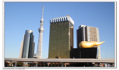 白天的「TOKYO SKYTREE」和「Asahi Super Dry Hall」的金黃泡沫