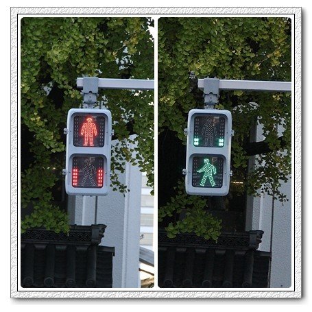 雖然只差了一個大十字路口,這裡是用這種比較舊式的紅綠燈,
