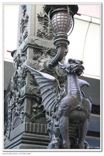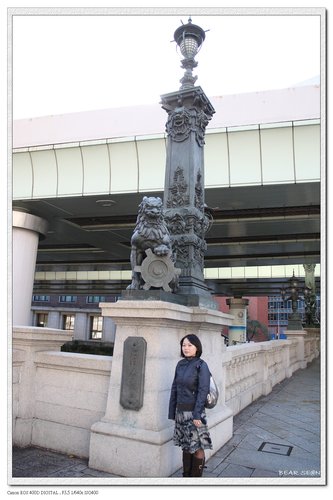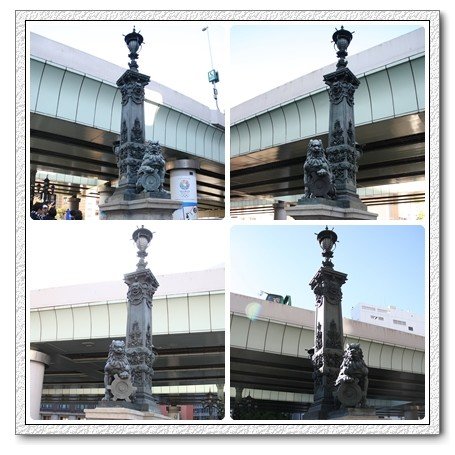 <日本橋>橋頭四端,有四尊麒麟銅柱,一公一母,