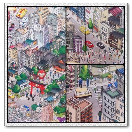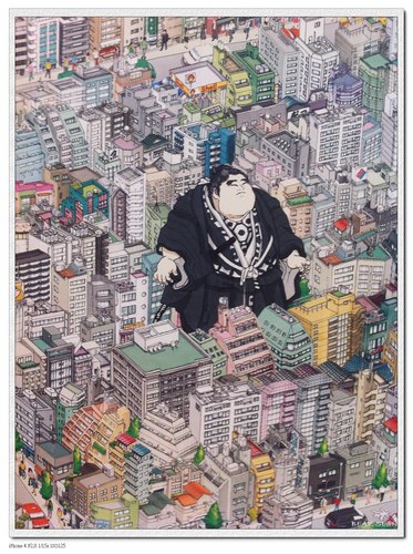 整副圖畫用漫畫的筆觸,作者功力超強,整個街景的立體度和透視度很明確,也表現出詼諧的感覺.