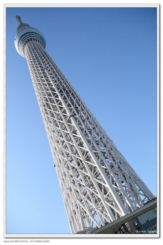 站在塔下想要拍「TOKYO SKYTREE」的全身,幾乎每個遊客都變成這種姿勢.