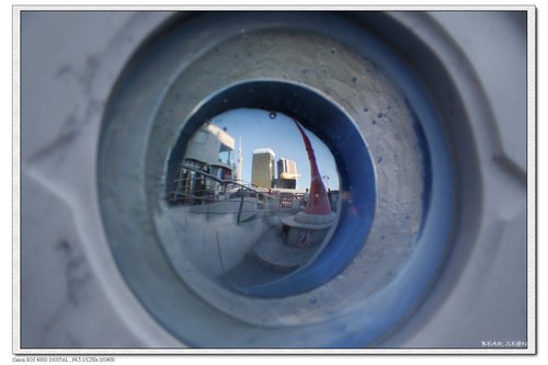 貓眼裡,看到彎彎圓圓的「TOKYO SKYTREE」和「Asahi Super Dry Hall」.